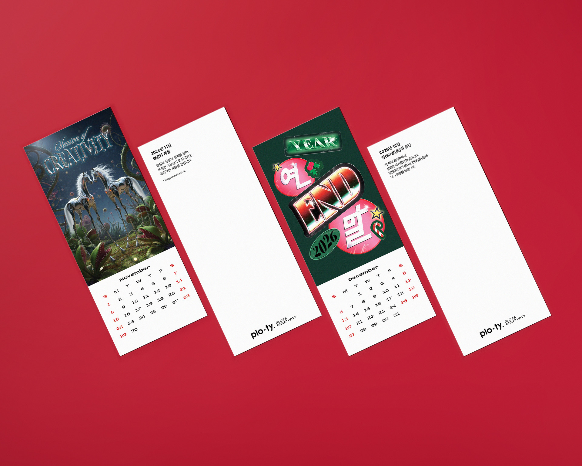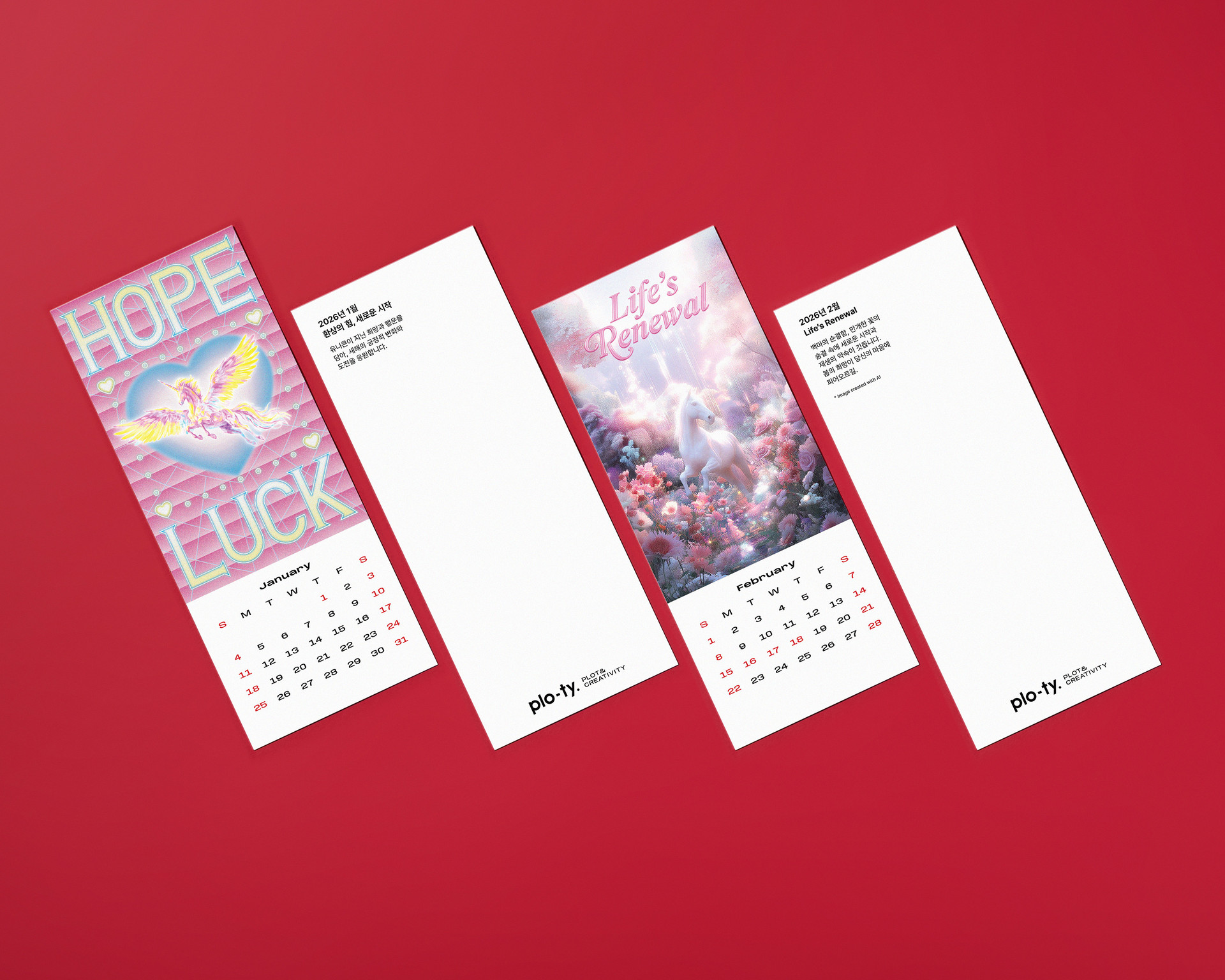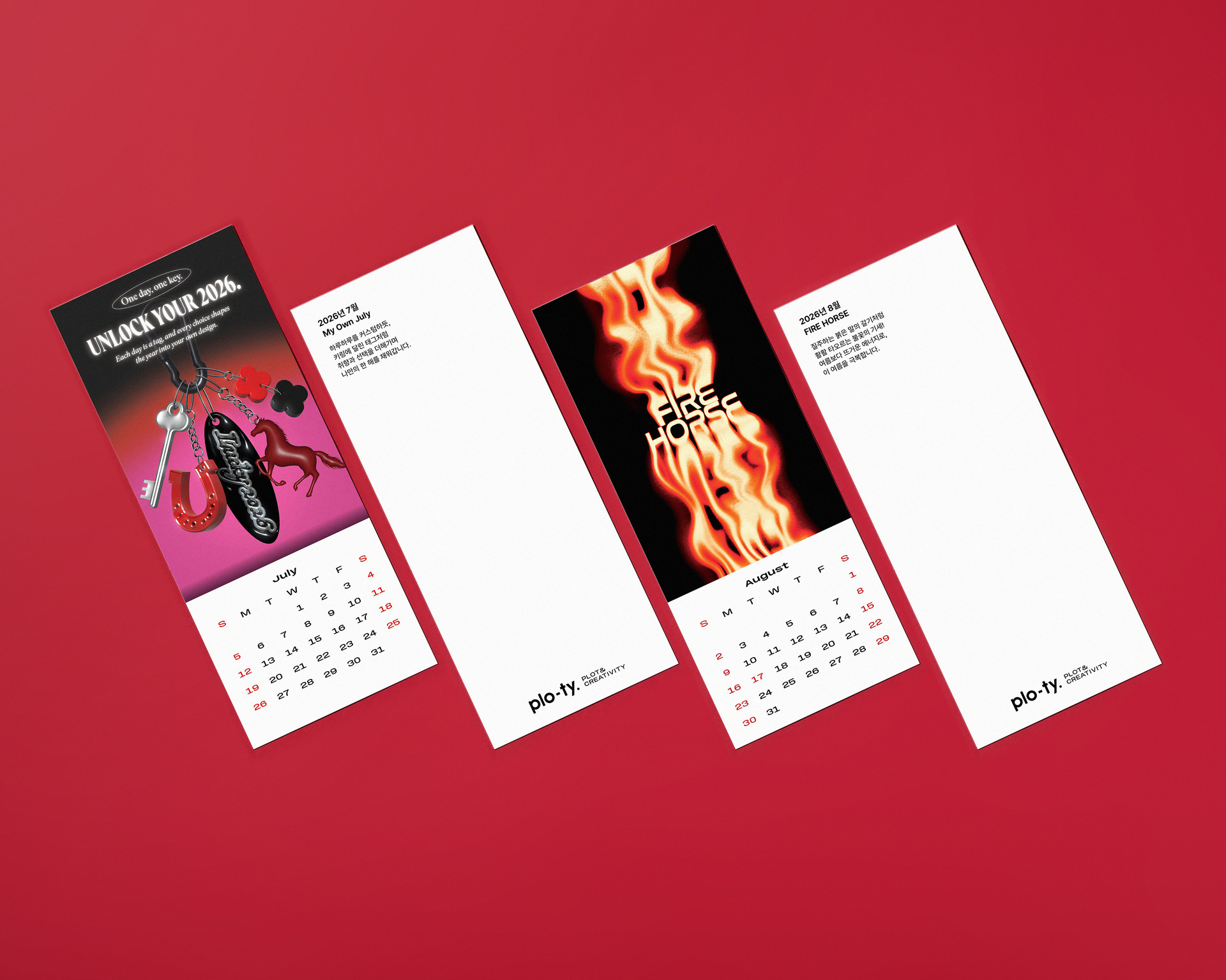 Starting from a single keyword—the horse, the symbol of the byeong-o year—each designer took charge of their own segment and developed an individual concept graphic for each of the twelve months, based on their personal tastes and interpretations. These distinct expressions come together to create a richly varied experience throughout the year. The physical calendar was designed as a compact and practical desk object, offering a new atmosphere each month and functioning beyond a simple date reference—as an inspiration board–like visual piece.