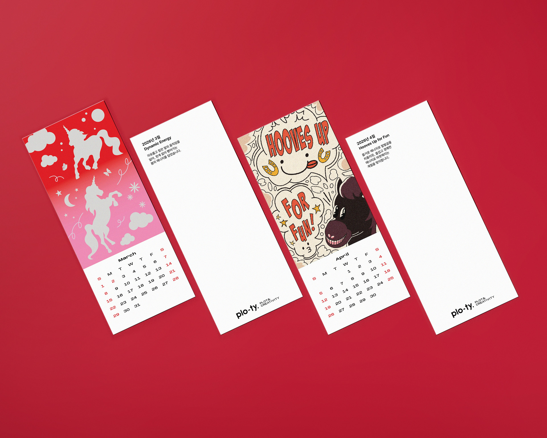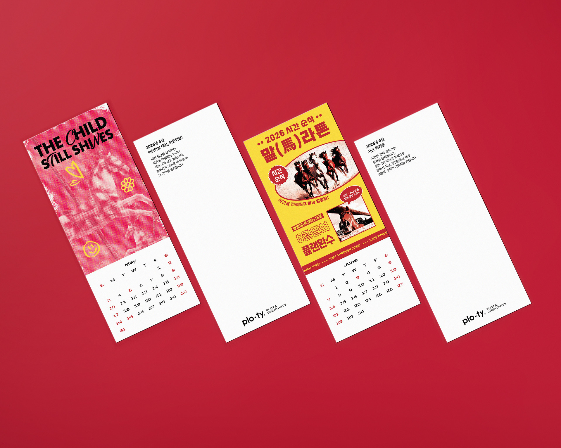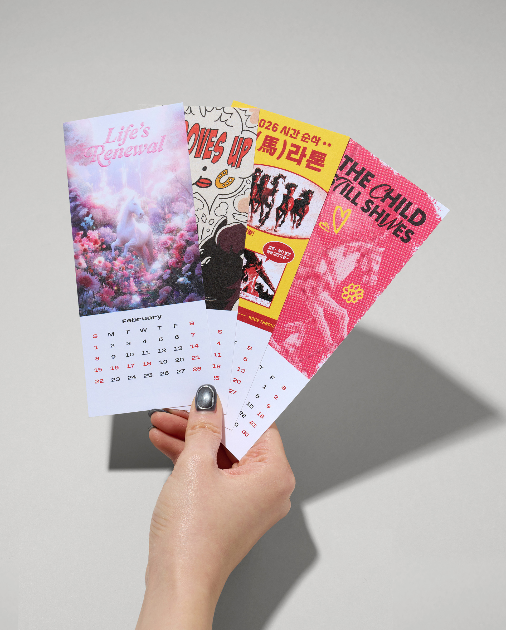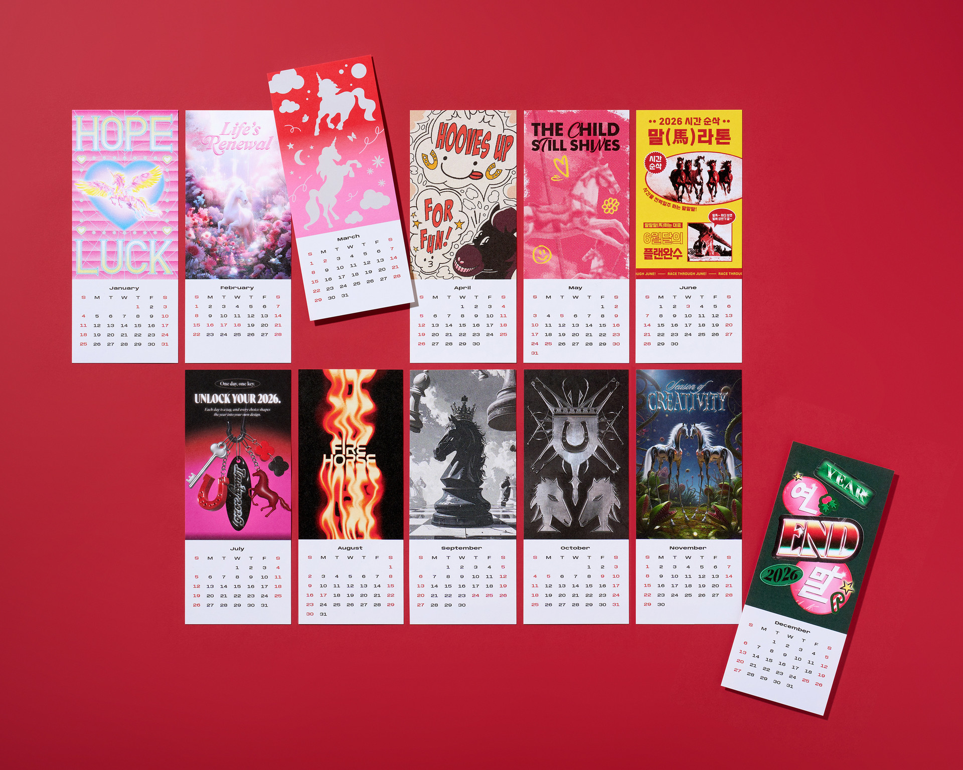 This desk-sized mini calendar was designed and produced to celebrate the Year of the Red Horse in 2026. The project was carried out as a side initiative involving several designers, allowing each to freely explore their own perspectives and visual worlds. It departed from the usual project flow and progressed in a more flexible and open-ended manner.